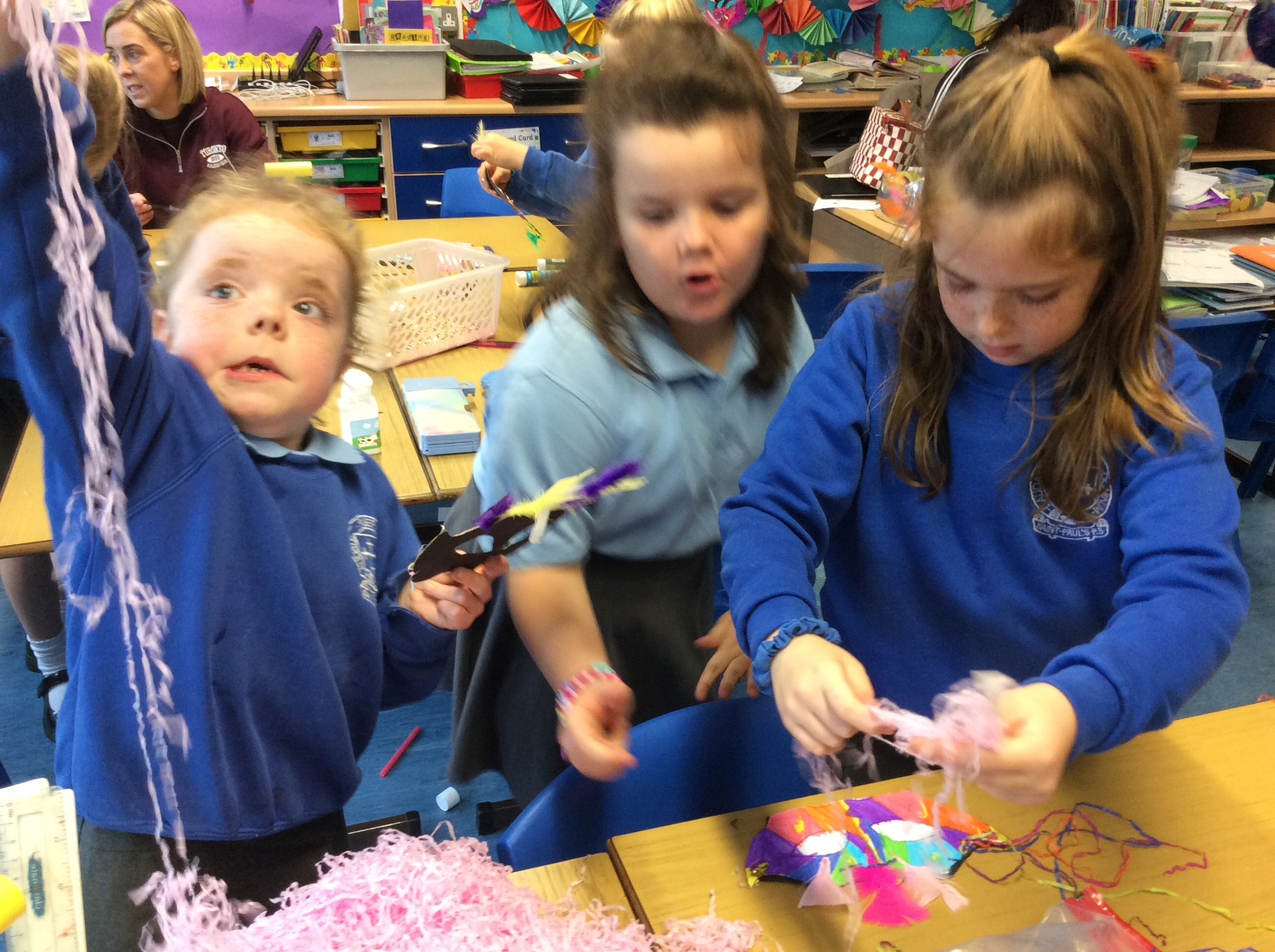 Our Primary 4/5 pupils really enjoyed planning and creating carnival masks for our Celebrations topic. After finding out about Rio and Brazil, they even tried some carnival dancing.